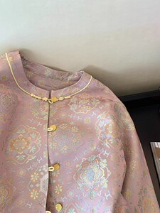 新中式烫金提花圆领盘扣外套女2025秋新款高级感气质显瘦国风上衣