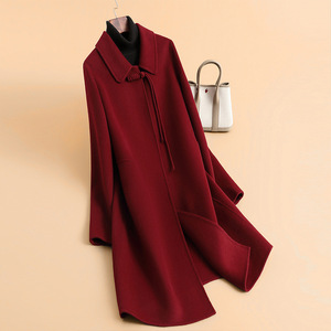 2025秋冬新款新中式国风高端大码妈妈装双面羊毛大衣外套大码女装