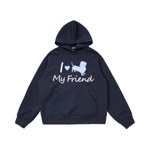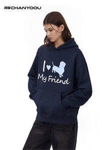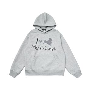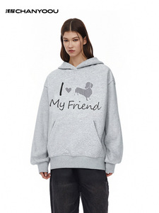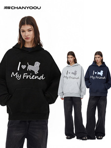 浅耀女装|美式复古腊肠犬刺绣连帽卫衣男女慵懒风宽松情侣上衣潮