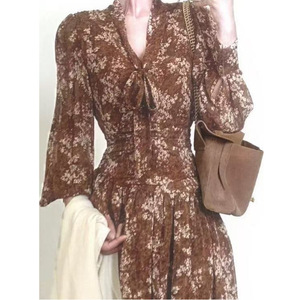 茶歇法式气质老钱风碎花连衣裙子女夏季2025新款长袖雪纺收腰短裙