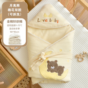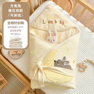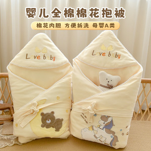 新生婴儿纯棉a类抱被初生宝宝产房棉花包被防惊跳四季通用襁褓巾