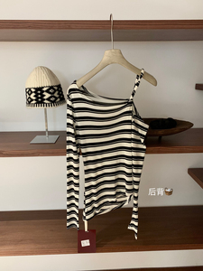WGWE秋季时尚设计感小众精致修身显瘦减龄一字肩长袖T恤女W7241