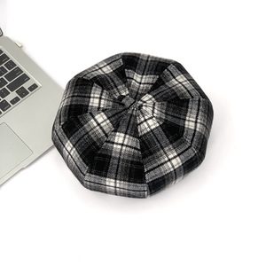 文艺学院风格子贝雷帽女英伦复古气质百搭氛围感显脸小八角画家帽