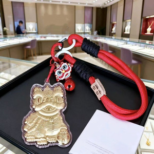 足金999中国风醒狮手机链吉祥物挂件钥匙扣包包挂饰国潮活动礼品