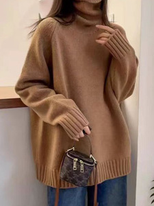 2025秋冬季新款羊毛堆堆领套头长袖毛衣女宽松纯色内搭针织打底衫