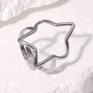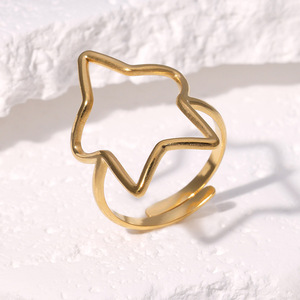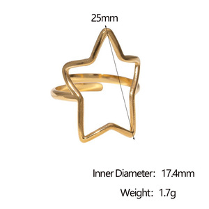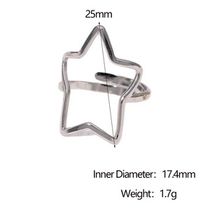 跨境热销不锈钢戒指时尚百搭线形五角星可调节开口戒钛钢手饰批发