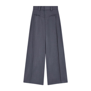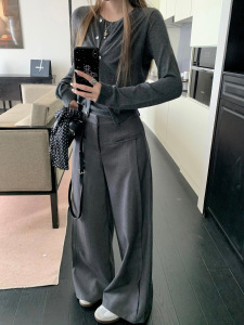 慵懒风垂感灰色西装裤休闲裤女春季百搭高腰阔腿裤直筒长裤拖地裤
