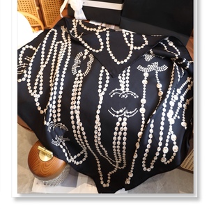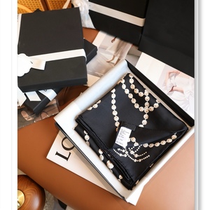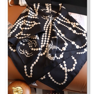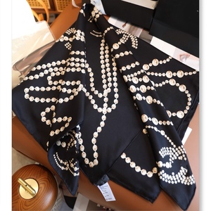 珍珠项链链条高档斜纹真丝围巾女秋冬百搭气质时尚方巾女士披肩
