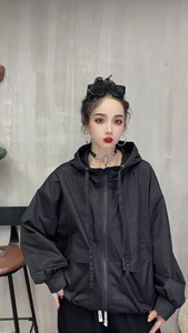 纯色工装开衫拉链连帽外套女 秋季新款百搭气质减龄夹克衫 25113