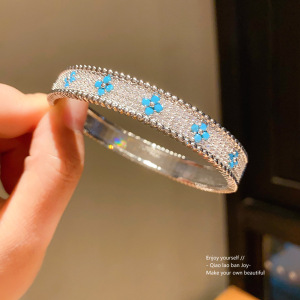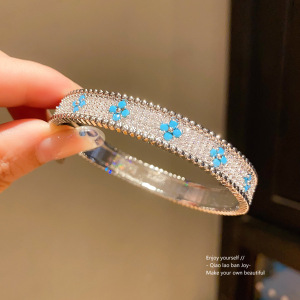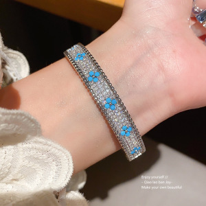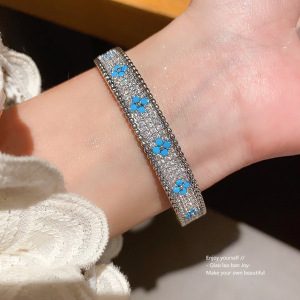 锆石幸运草纹理卡扣手镯女复古宫廷风气质手环轻奢高级感手饰批发