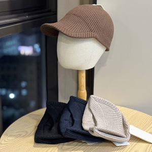 新款纯色针织棒球帽复古画家帽男女时尚百搭街头出游条纹鸭舌帽子