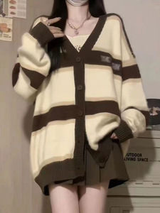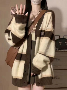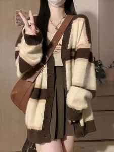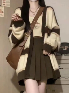 奶系穿搭洋气减龄显瘦针织衫2025新款秋冬季慵懒风软糯毛衣外套女