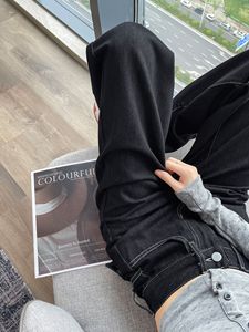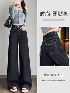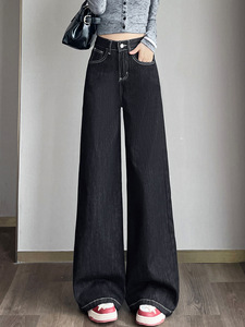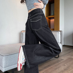 黑色翻盖后袋阔腿牛仔裤女长裤秋冬季新款宽松显瘦时尚休闲拖地裤