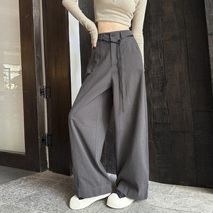 洗水棉灰色阔腿裤女秋2025新款小个子高腰显瘦直筒垂感拖地西装裤