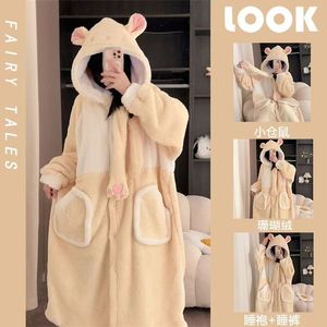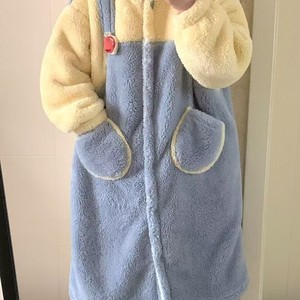 可爱卡通背带熊睡衣女珊瑚绒保暖冬季长袖长裤可外穿套装家居服