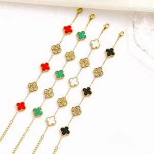 18k玫瑰金双面镶钻贝壳手链高级感女四叶草首饰钛钢花瓣饰品批发