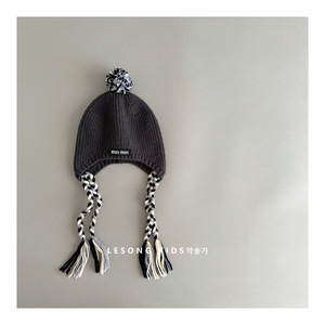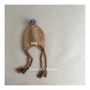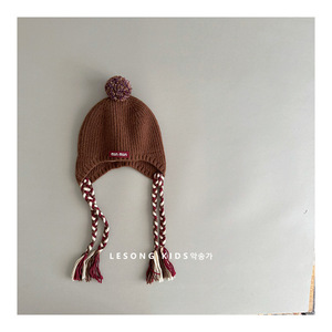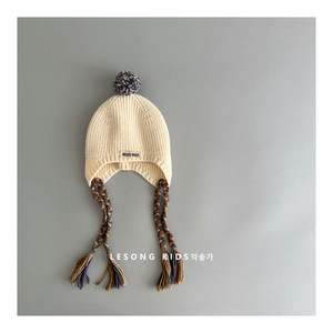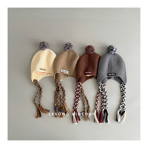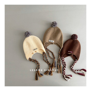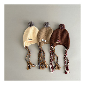 儿童帽子秋冬季男女童洋气辫子针织护耳帽宝宝加厚保暖防风套头帽