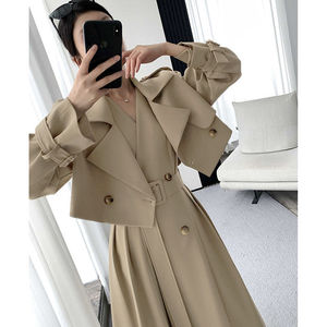 【两件套】连衣裙2025春装新款高级感收腰显瘦风衣女神范两件套