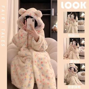 冬季新款波点连体可爱小熊睡衣珊瑚加绒加厚保暖珊瑚绒连帽家居服