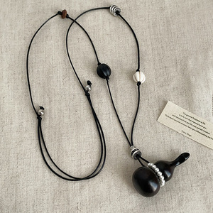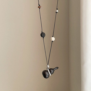 轻奢质感木质葫芦珍珠抽拉项链女高级感个性时尚潮流颈链锁骨链