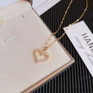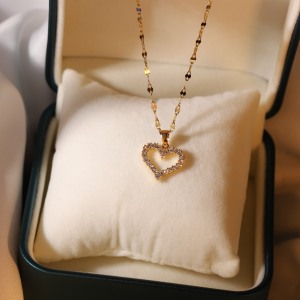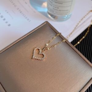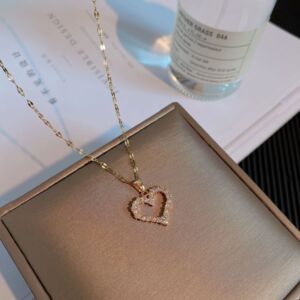 钛钢项链女爱心韩版不掉色满锆石镂空吊坠小众设计感时尚潮锁骨链