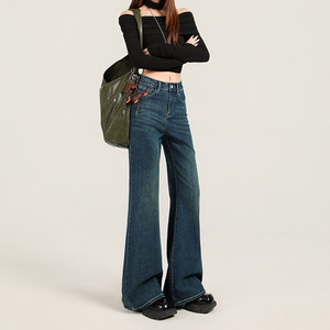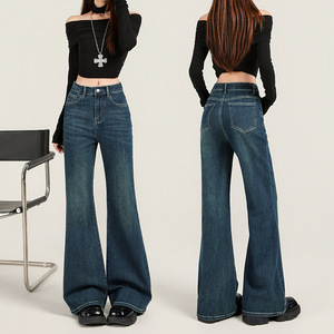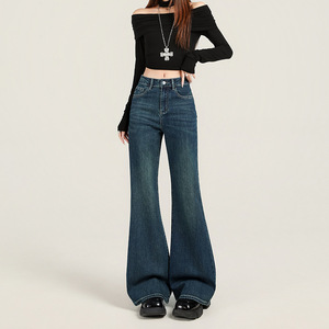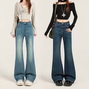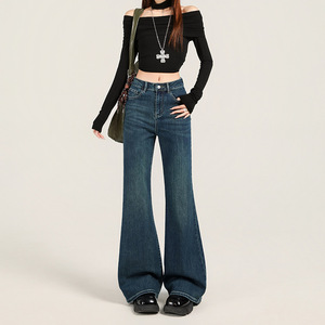大码不贴腿复古微喇牛仔宽松直筒显瘦喇叭牛仔裤女弹力修身秋款