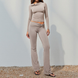 XY25370秋季女装2025新款套装 欧美风纯色修身不规则领长袖两件套