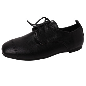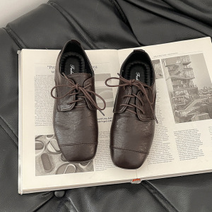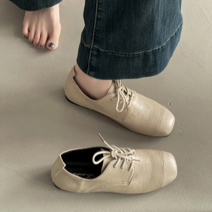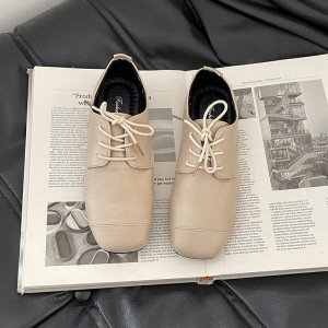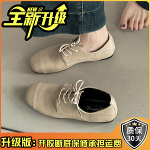 时尚百搭复古方头系带显瘦平底小皮鞋女2025夏季新款纯色简约单鞋