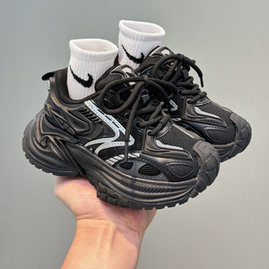 儿童款响尾蛇银色男童老爹鞋黑色异瞳猫眼女童户外运动鞋软底潮流