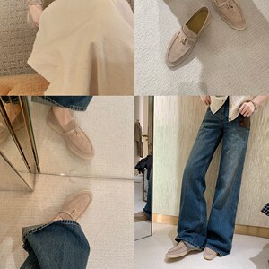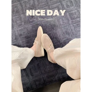 牛皮~葡萄ma同款 lp流苏锁扣小皮鞋女圆头拼接软底豆豆厚底乐福鞋