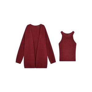 慵懒高级感秋季穿搭红色时尚套装女秋冬毛衣开衫外套背心两件套潮