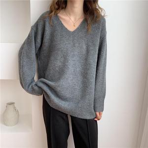 胖mm2-300斤大码V领毛衣女秋韩百搭宽松慵懒风针织长袖打底外穿