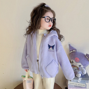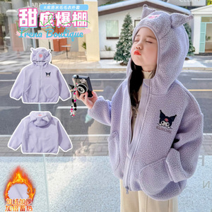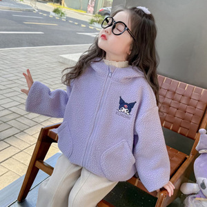 女童卡通毛毛衣外套秋冬新款儿童洋气加绒加厚连帽毛绒上衣百搭潮