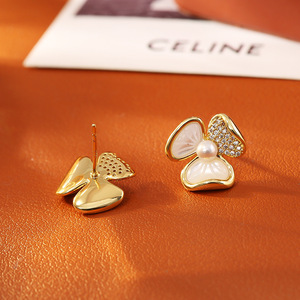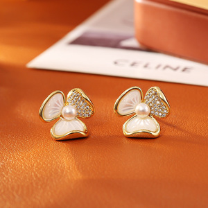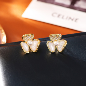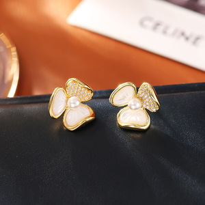 源头厂家天然贝母花朵耳钉高级感时尚精致小巧耳饰女温柔立体饰品