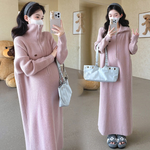孕妇装秋冬季连衣裙2025新款时尚慵懒风软糯针织毛衣裙高级感穿搭