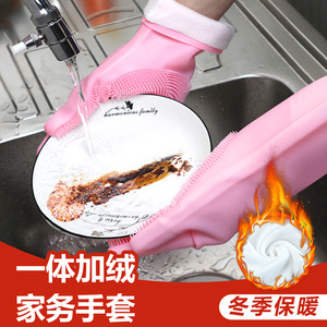 新款家用洗碗防水防滑硅胶手套猫狗宠物洗澡防抓防咬手套加长批发