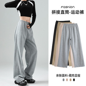 福利!2025秋冬灰色运动裤女高腰宽松休闲裤小个子拖地直筒阔腿裤