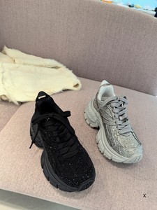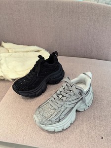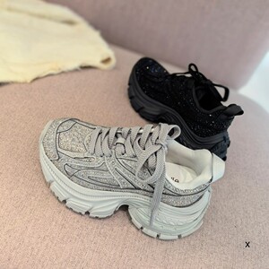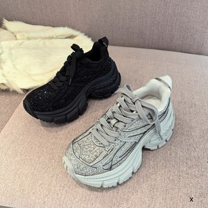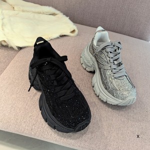 欧洲站XJ女鞋25秋冬时尚软磨砂牛皮烫钻系带休闲款老爹鞋慢跑钻鞋