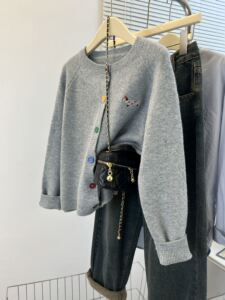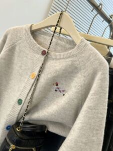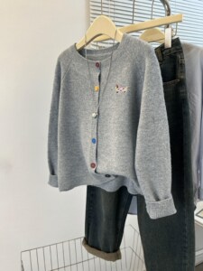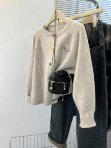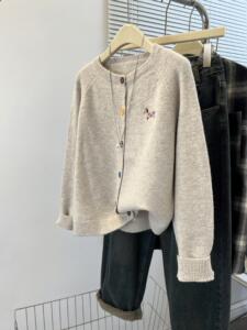 小狗针织开衫女春秋外搭短款宽松上衣2025秋季新款学院风毛衣外套