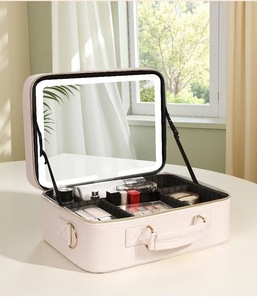 2025新款化妆包大容量高颜值带镜灯LED化妆箱旅行护肤品收纳包