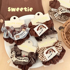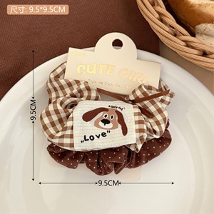 2#咖色系格纹小狗水洗标发圈【两个装】