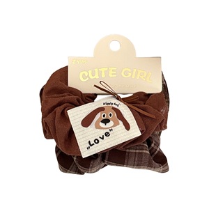 3#奶咖色格纹小狗水洗标发圈
