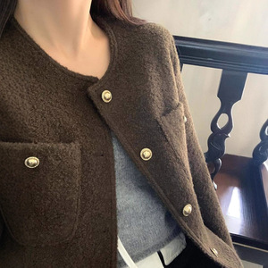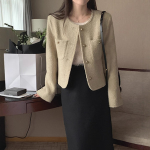 跨境 2025秋季新款韩国东大门圆领小香风短款外套女毛呢短上衣