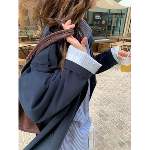 【厂家直销】韩系春秋风衣宽松气质翻领2025英伦新款中长款大衣高