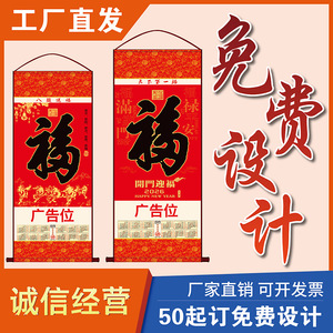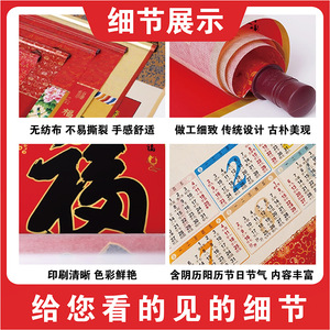 新款2026马年单张无纺布福字挂轴定制银行医院保险企业年月历定制