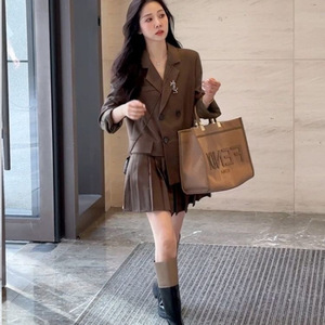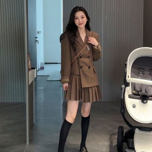 【24小时发货】设计感假两件拼接压褶西装连衣裙新款显瘦百褶短裙