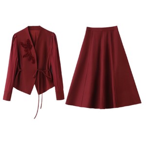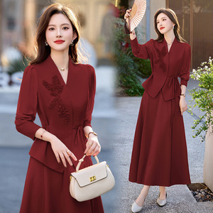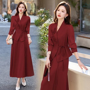 红色优雅气质套装裙女2025春秋新款别致漂亮收腰衬衫半身裙两件套