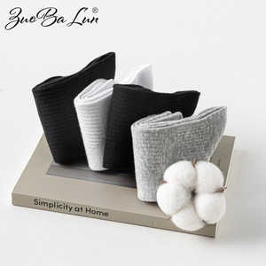 黑白袜子男女秋冬纯棉中筒袜透气防臭纯色运动袜网眼长筒男袜批发