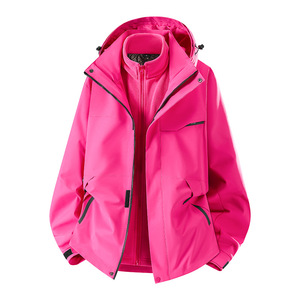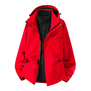 户外耀眼红冲锋衣男女2025新款三合一户外防风防水硬壳登山服外套