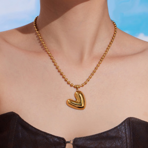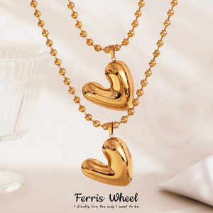 摩天轮 INS欧美网红跨境18K镀金 不锈钢爱心圆珠项链个性轻奢饰品